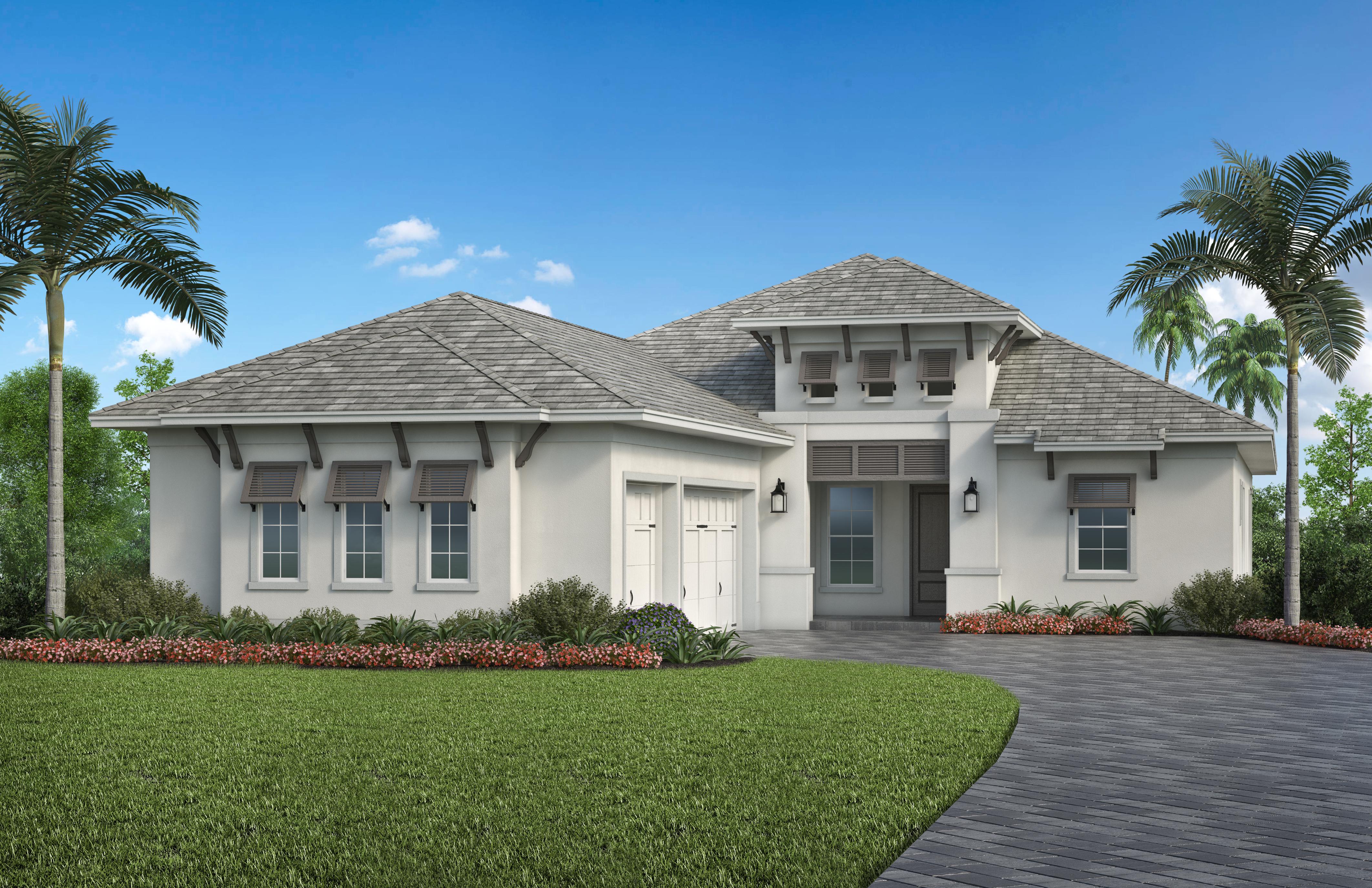 Each of Stock’s eight new models will feature three distinct design styles for buyers to choose from – British West Indies, Mediterranean, and Florida Coastal. Among them is the Mayfield. Offering four bedrooms, three full and one-half bath, a formal dining and great room, study, breakfast nook, and a three-car garage, the Mayfield has more than 3,000 square feet under air. Drawing inspiration from the relaxed yet sophisticated lifestyle of the coast, the interior design by Pizzazz Interiors will convey a sense of freshness as well as a timeless elegance and style. It will feature unique combinations of simple colors and organic elements, such as green florals, natural wood beams, and textured wall coverings.