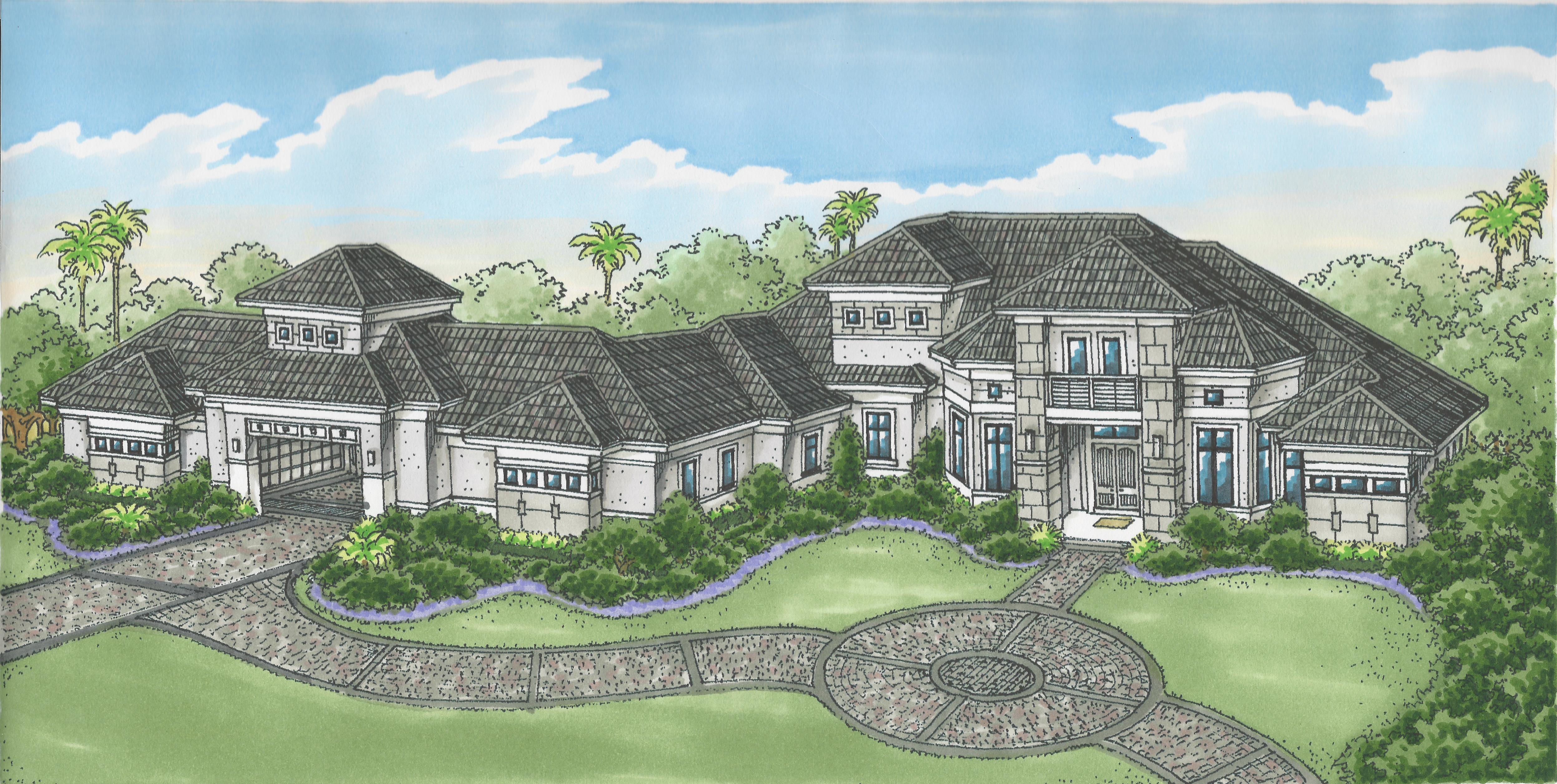 The Il Cortile is a single-story, courtyard-style home. The three-bedroom plus guest cabana suite/plus study/three full-bath/two half-bath home has 4,661 square feet under air and 8,348 total square feet, including a four-car garage plus golf cart storage. It is priced at $3,875,000, including furnishings