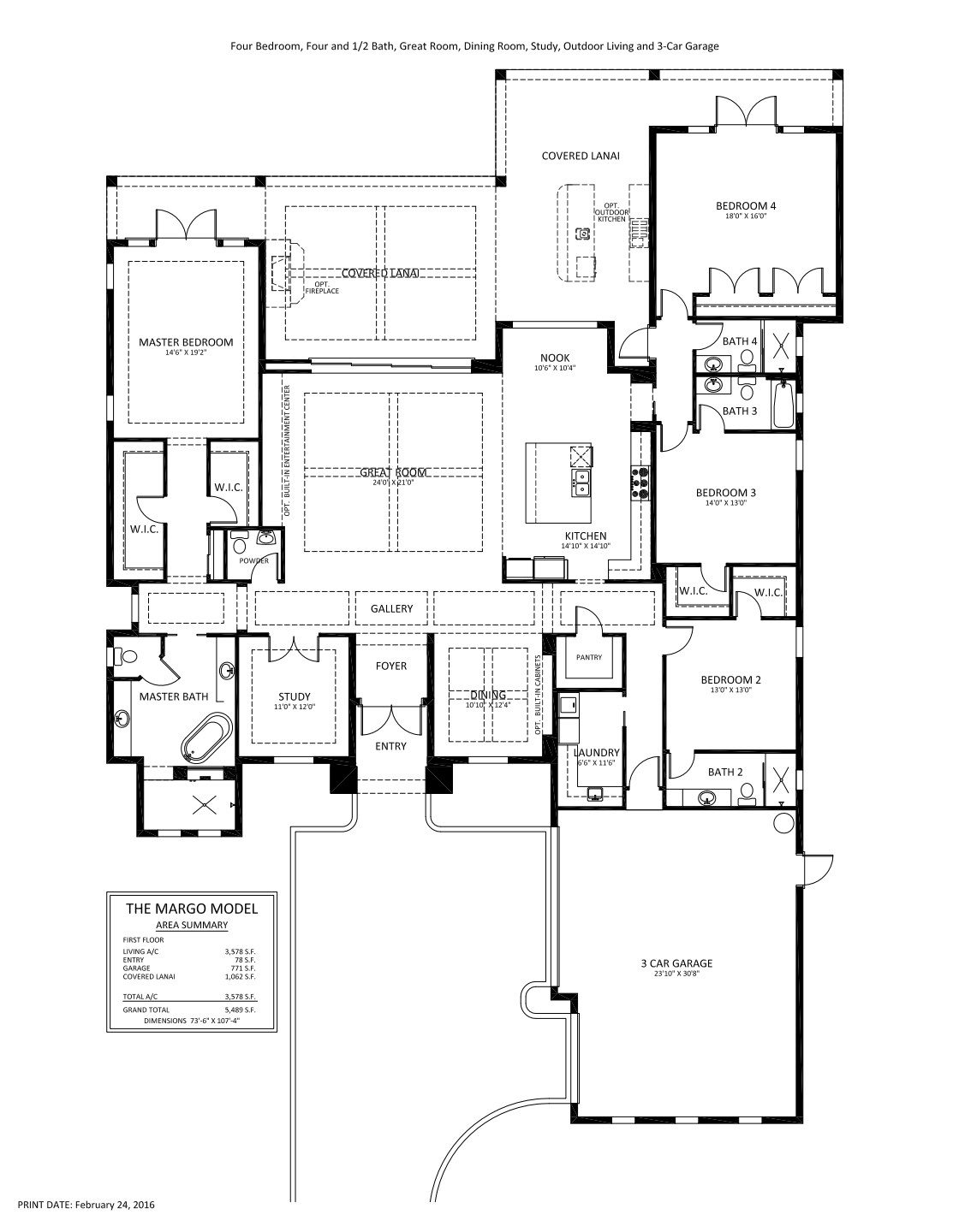 Four Bed, Four Full and One Half Bath, Great Room, Dining, Study, Outdoor Living, Three Car Garage