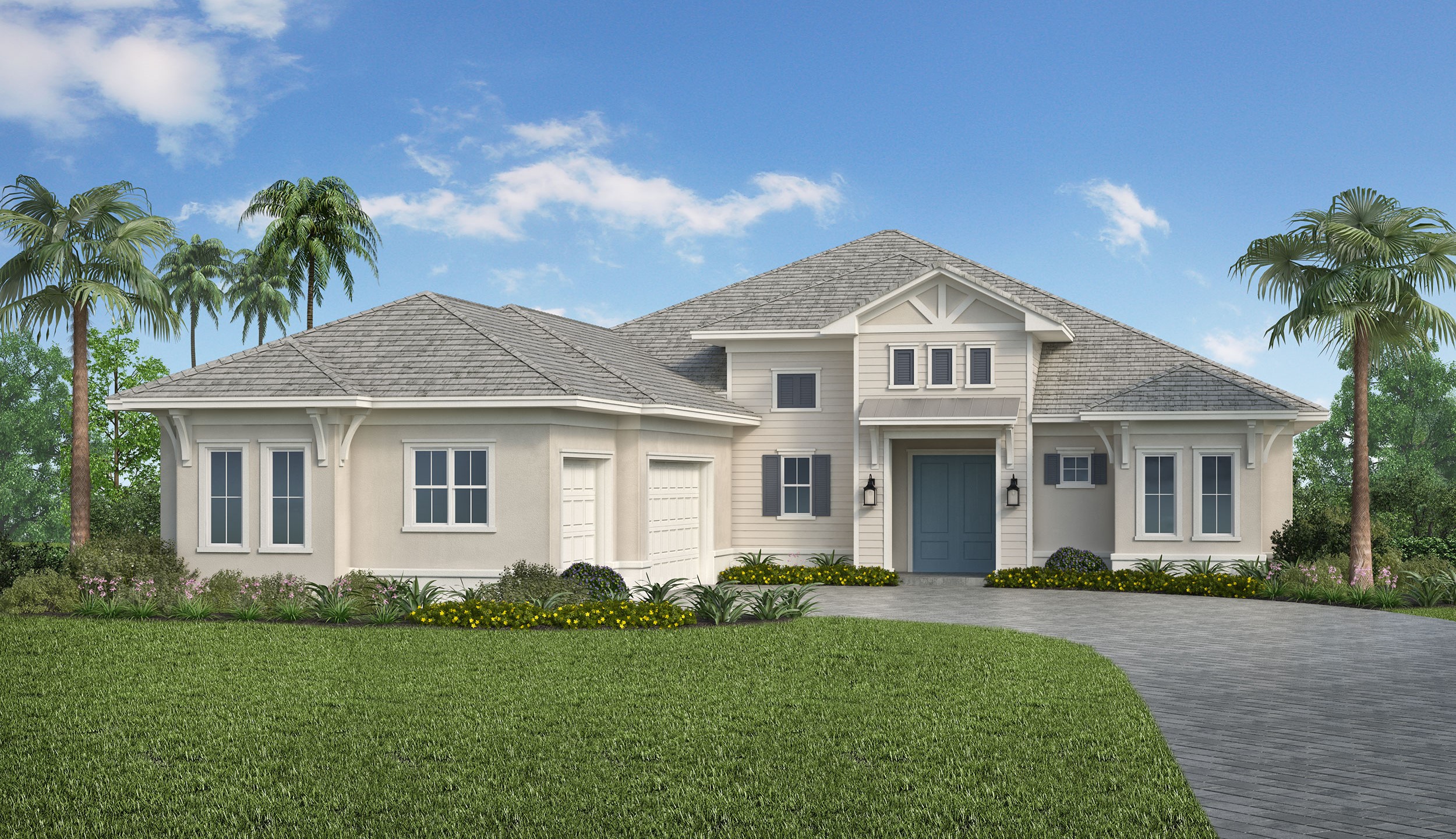 Three Bedroom, Three Bath, Great Room, Dining Room, Study, Outdoor Living, Three-Car Garage